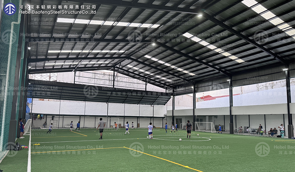 Clear-Span Interiors: Prefab structures provide large, column-free spaces, essential for an unobstructed football pitch and optimal play.